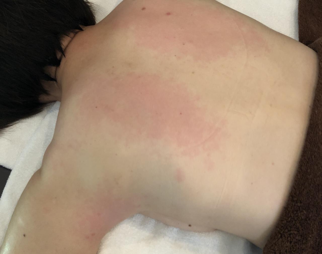 頭いた-い、吐き気がする-て来店されたお客様。肩も肩甲骨もガチガチでした😣 そんな時は、マシンをあてるだけで赤くなってしまうんです。